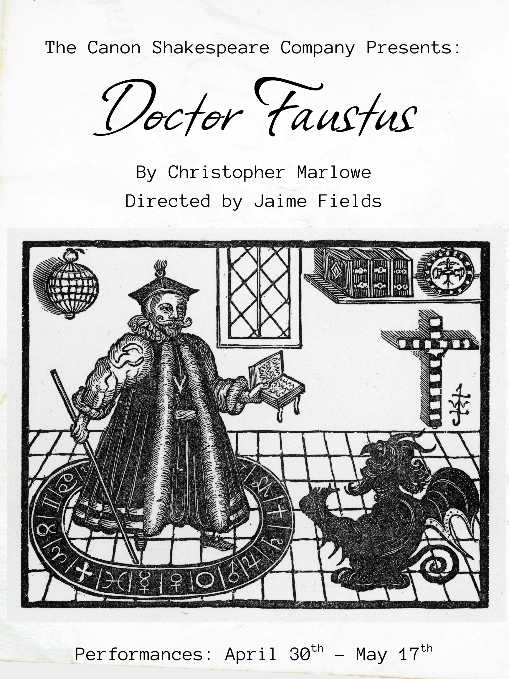 The Canon Shakespeare Company presents Doctor Faustus by Christopher Marlowe, directed by Jaime Fields!